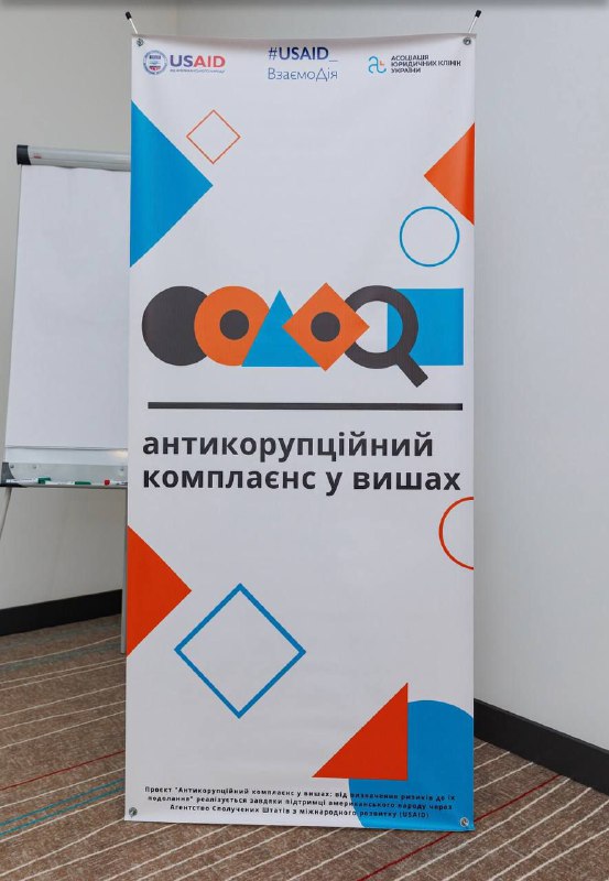 Минулого тижня у Києві відбулась робоча зустріч учасників ініційованого Асоціацією юридичних клінік України (АЮКУ) проєкту «Антикорупційний комплаєнс у вищій освіті: закордонний досвід і національна практика» за підтримки Проєкту USAID «Підтримка організацій-лідерів у протидії корупції в Україні «ВзаємоДія».