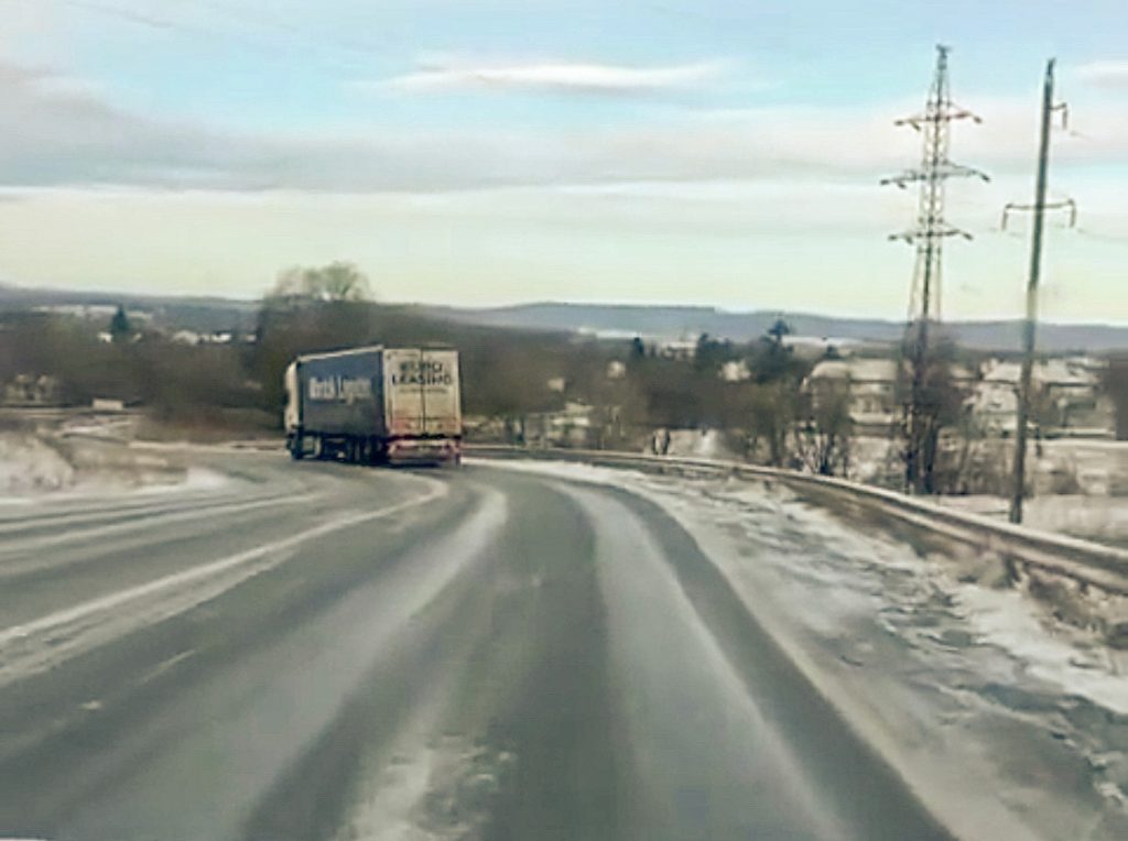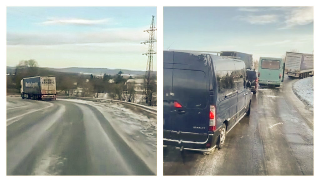 У вівторок, 28 березня, на ранок після нічного снігопаду усі дороги виявились складними для проїзду. Ожеледиця скувала шляхи. Через не посипані покриття, фури не могли здолати підйоми. На серпантині при виїзді з Дрогобича вранці утворився затор.