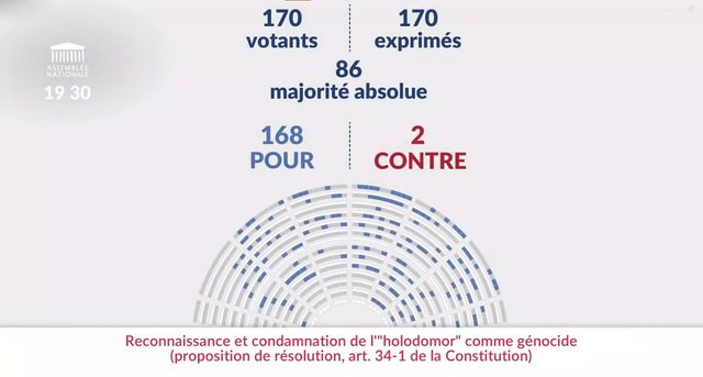 За відповідну резолюцію про визнання Голодомору геноцидом нашого народу проголосувало 168 обранців Національної Асамблеї, передає медіаагенція "Останній Бастіон".
