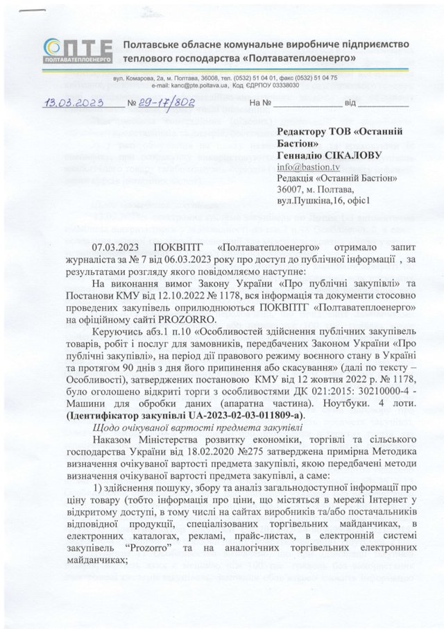 Нагадаємо читачам, що ПОКВПТГ «Полтаватеплоенерго» закупило відеообладнання та комп'ютерної техніки на понад 300 тисяч гривень.