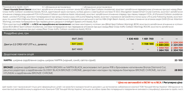 Наприклад, із неї незрозуміло, шкіряною чи текстильною має бути оббивка сидінь, бо вказано обидва варіанти. Нині в салонах автомобілі з переднім приводом та автоматичною коробкою передач у комплектації Business продають за 1,73 млн грн, а в комплектації Business+ – за 1,88 млн грн.