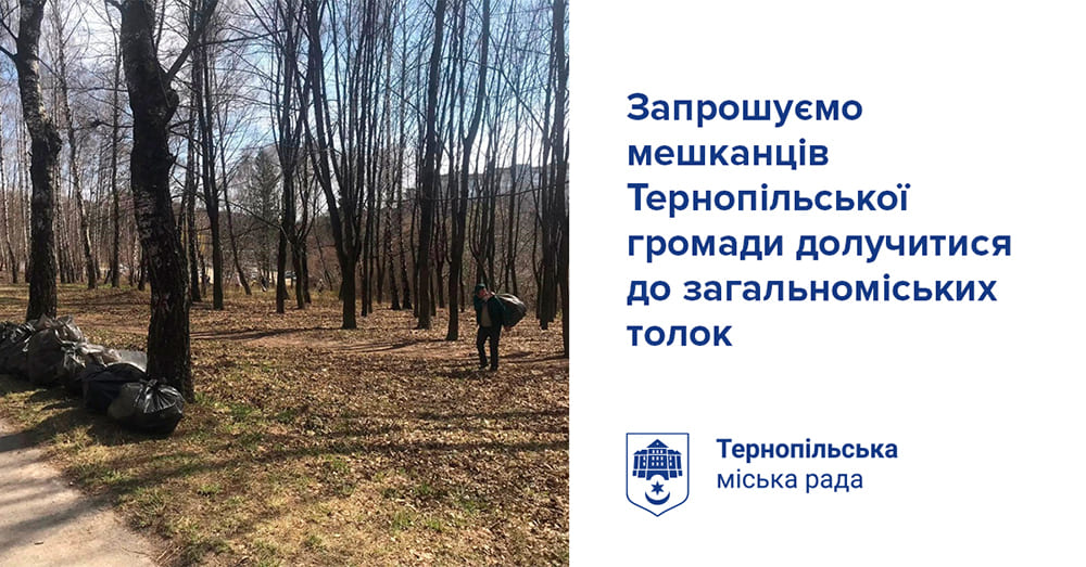 Мерія запрошує всіх небайдужих тернополян долучитися до загальноміської толоки, початок якої заплановано на 27 квітня.