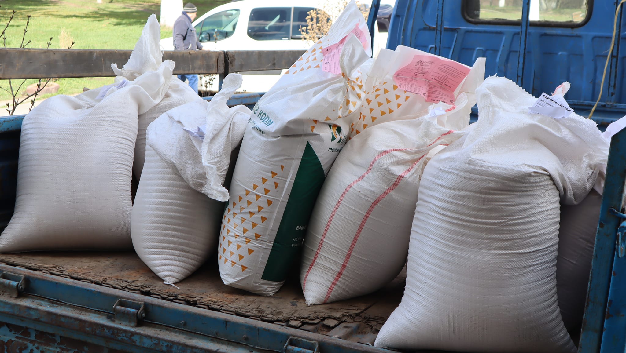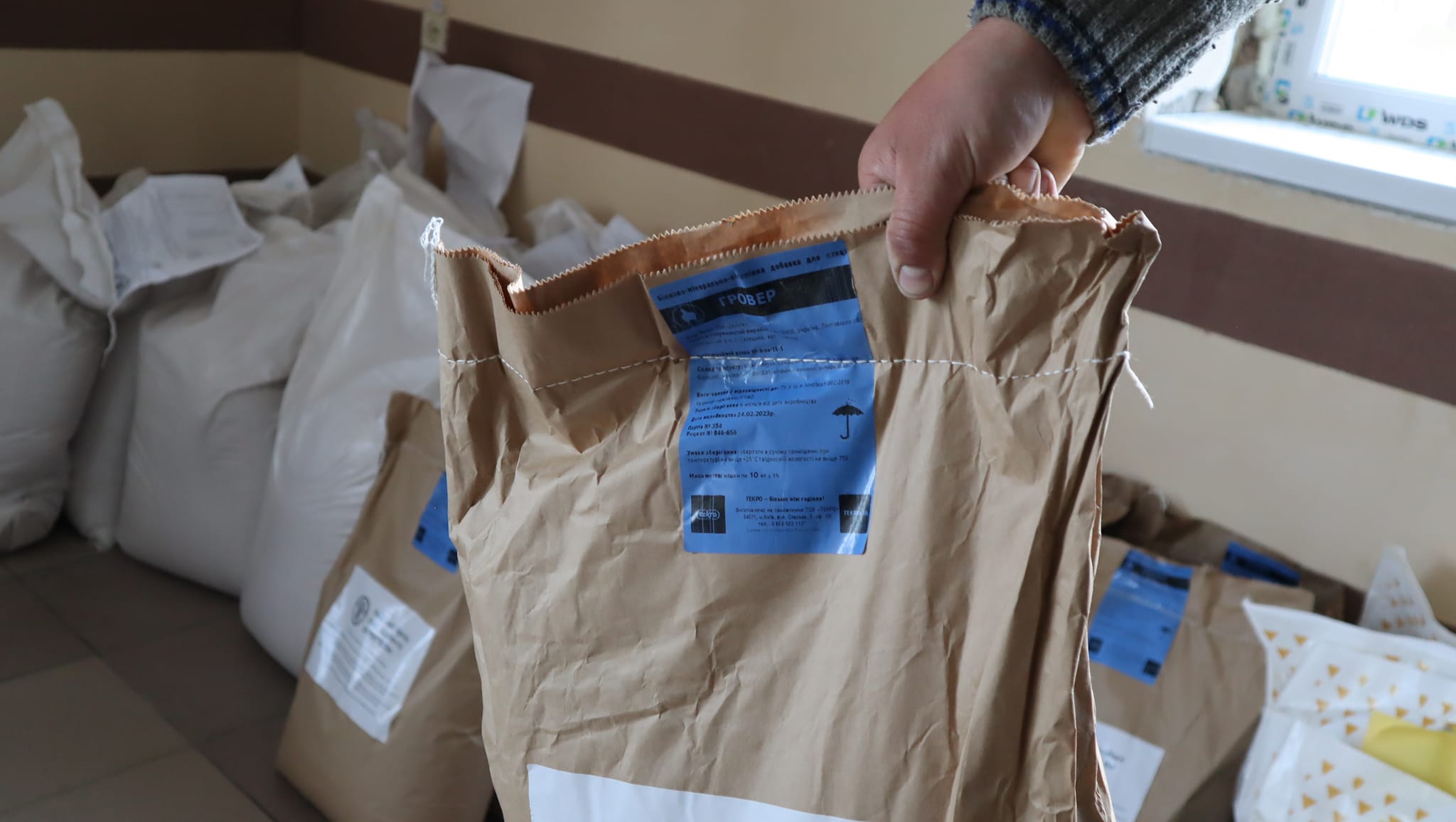 Роздають два типи наборів. Один для відгодівлі свиней, загальною вагою 200 кг, а інший – для курей, вагою 95 кг.