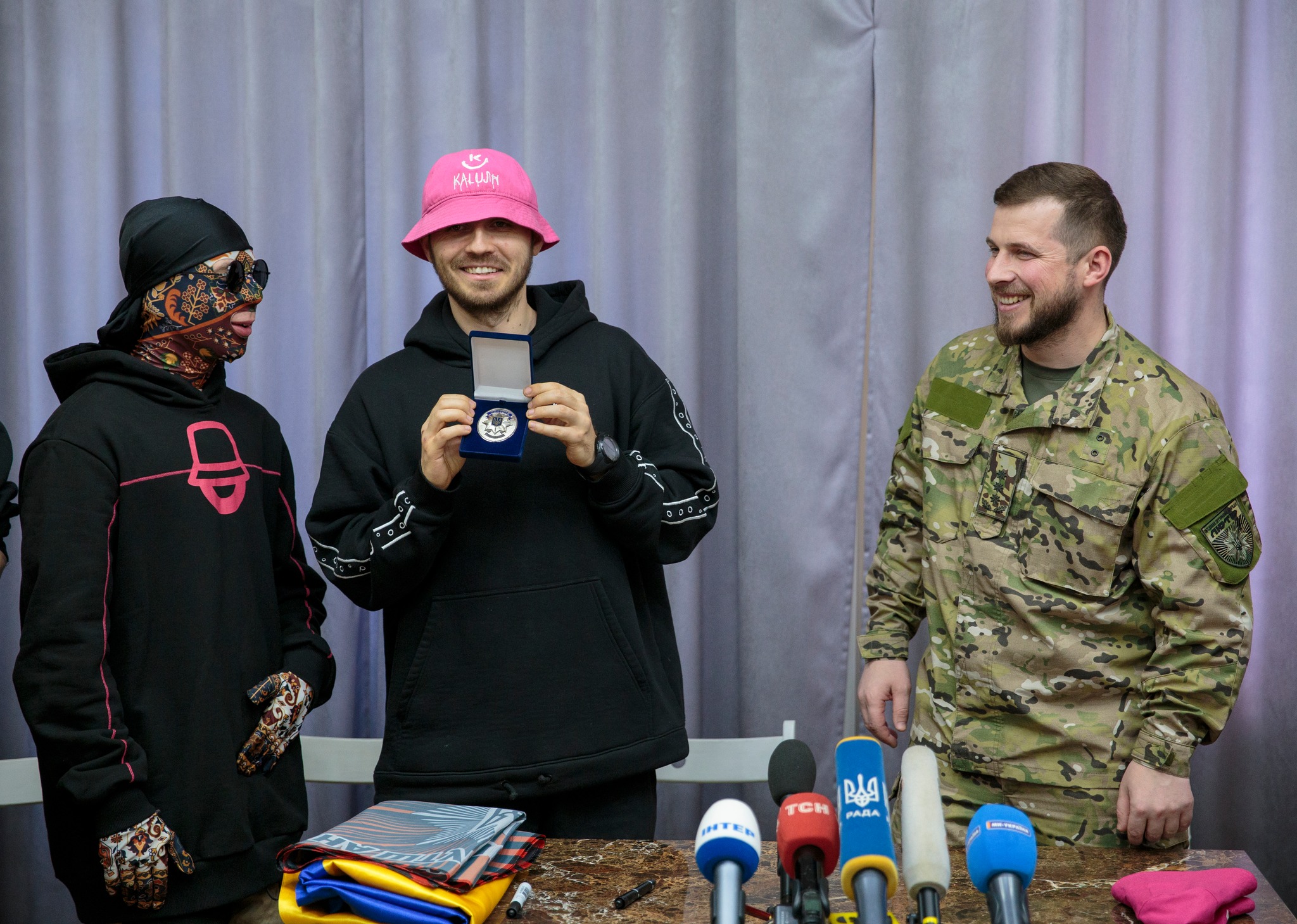 Фронтмен гурту Олег Псюк на знак підтримки передав бійцям бригади знамениту рожеву панаму з підписами учасників «Kalush Orchestra», яка також стала символом «Євробачення-2022»: «Хочемо подарувати рожеву панаму, яка стала символом нашої перемоги і, сподіваємося, це допоможе нашій спільній перемозі».
