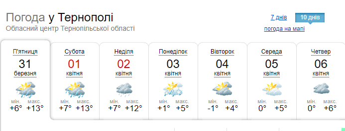 31 березня, 1 та 2 квітня у Тернополі та області потепліє до 13 градусів.