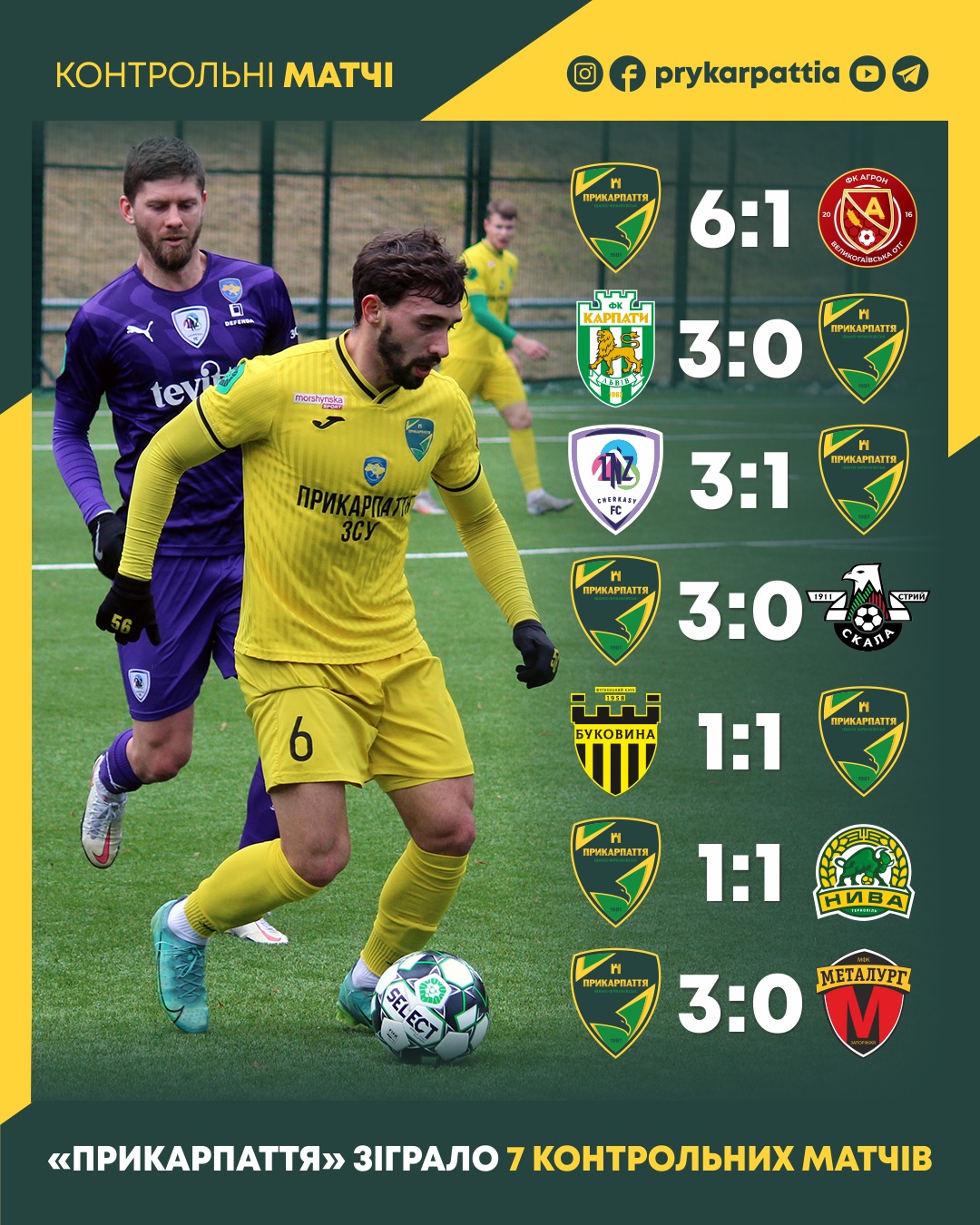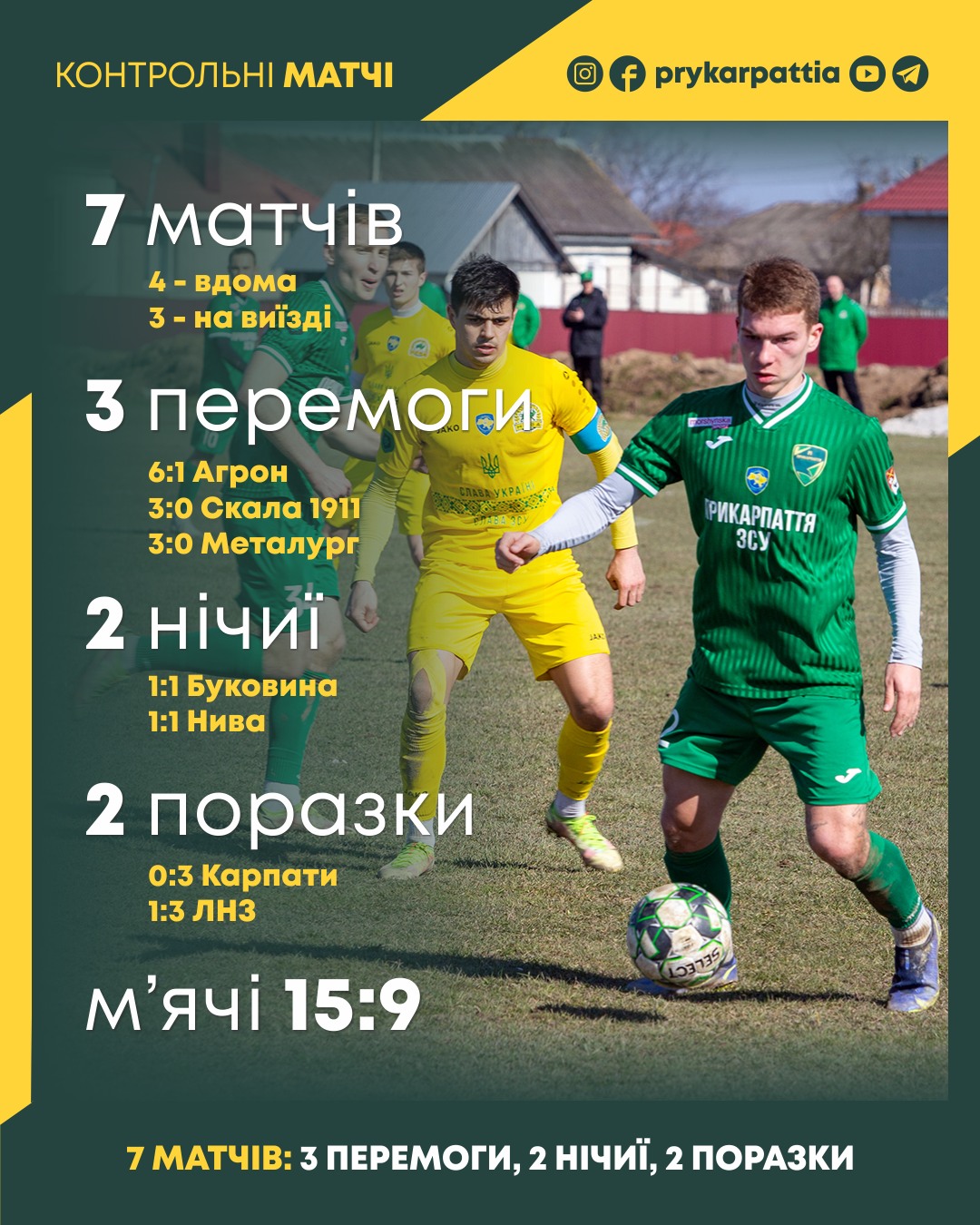 Під час підготовки до весняної частини сезону івано-франківська команда провела сім контрольних матчів.