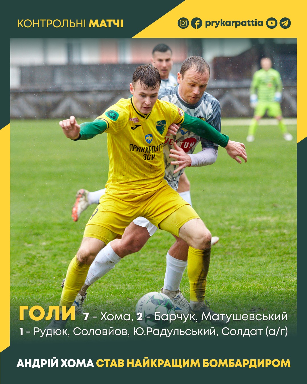 Найкращим бомбардиром “Прикарпаття” став Андрій Хома, який відзначився 7 голами. По 2 м’ячі у контрольних іграх в активі Романа Барчука та Олега Матушевського.