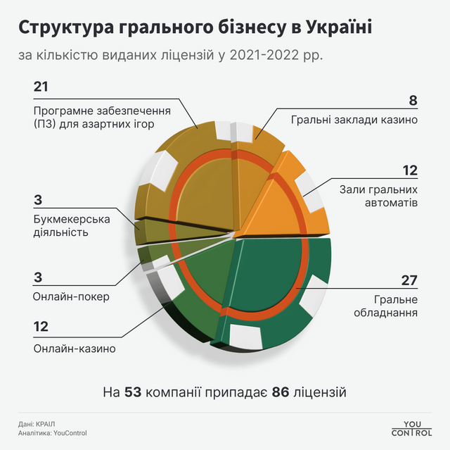 Ліцензований гральний бізнес в Україні налічує 53 компанії.