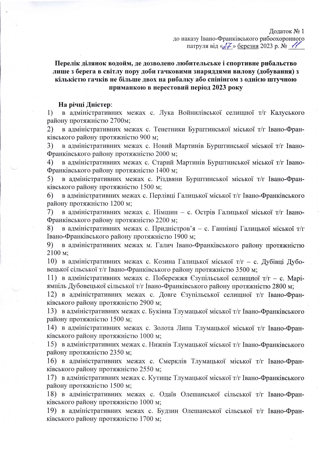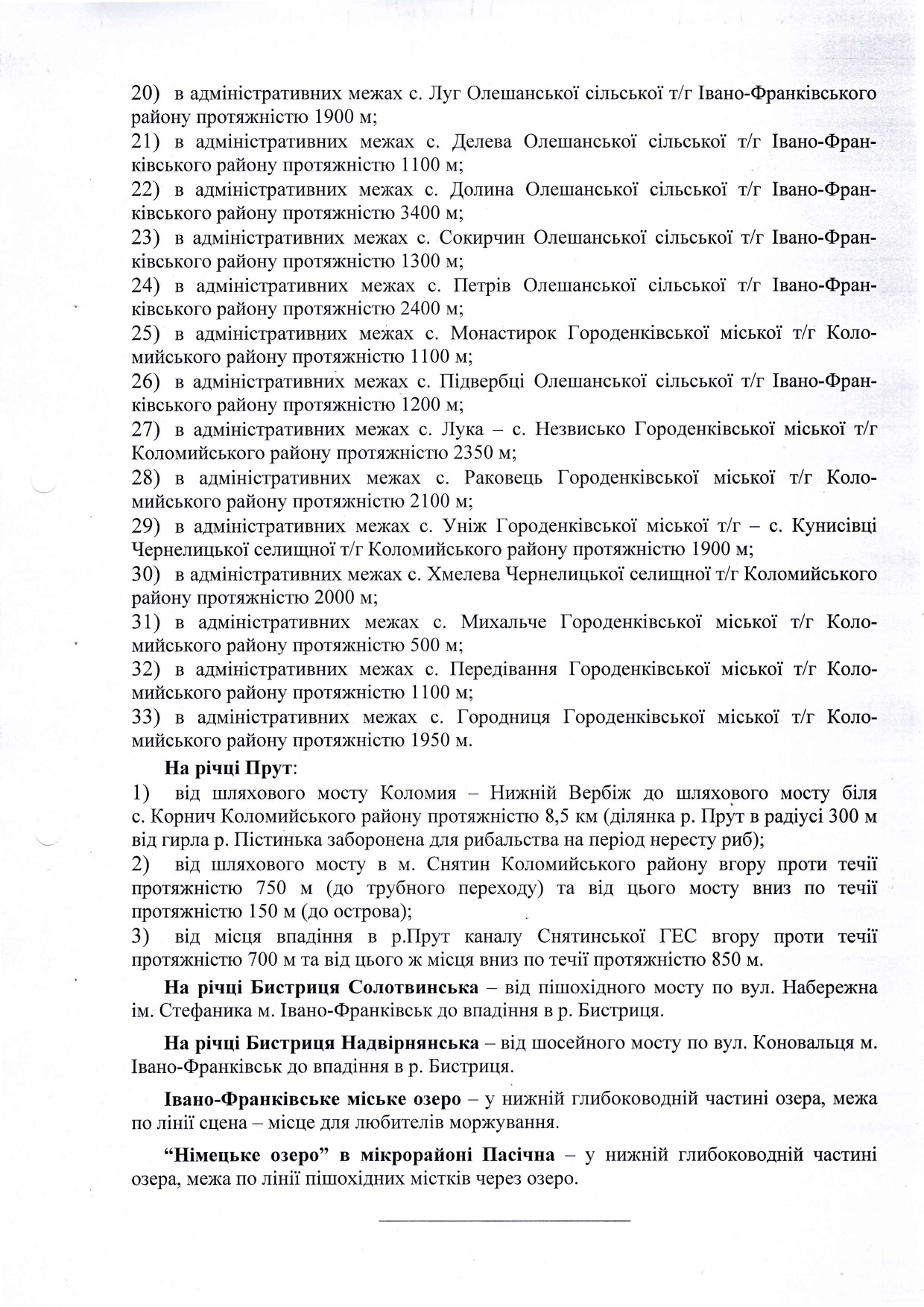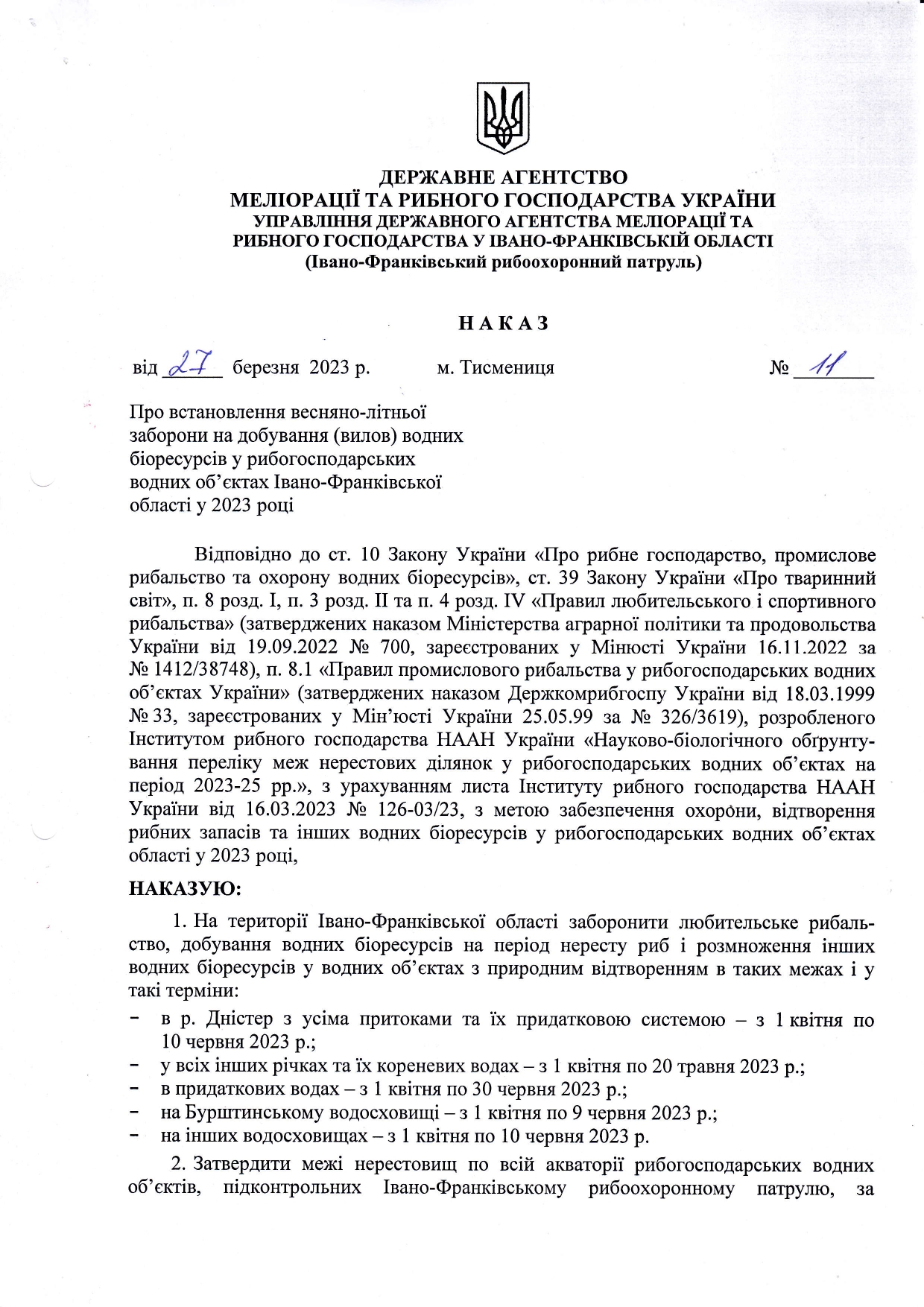 У документі список місць, де забороняється та дозволяється риболовля на території Прикарпаття під час нересту: