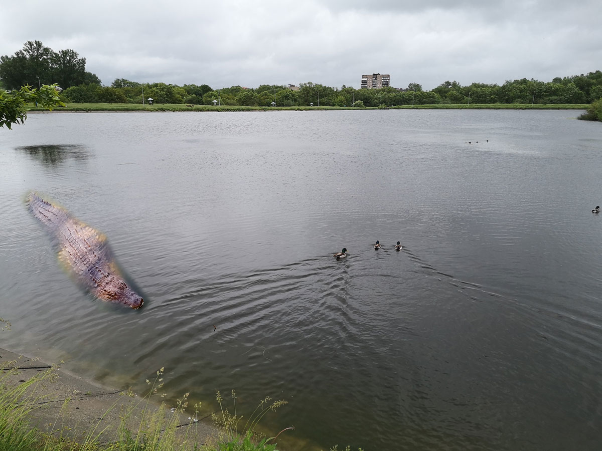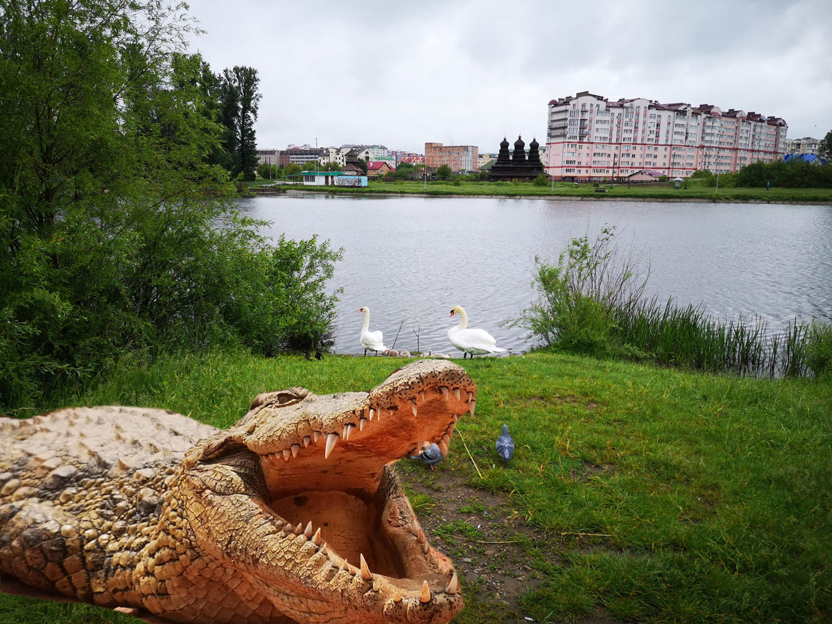 Родина крокодилів, яка нещодавно оселилася у Німецькому озері у мікрорайоні Пасічна в Івано-Франківську має поповнення.