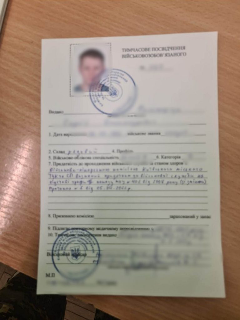 Крім того, всі три довідки, які нібито були видані різними районними територіальними центрами комплектування Києва та Харкова, були заповнені одним і тим самим почерком.