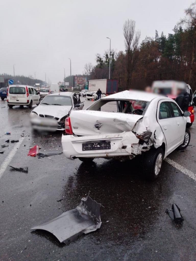 За попередньою інформацією правоохоронців, потік автомобілів рухався в бік Києва. Водії, які їхали в середній смузі, зупинилися для надання переваги. У цей час водії лівої – також пригальмував. А водій автобуса Setra не зреагував на зміну дорожньої обстановки і допустив зіткнення з автомобілями попереду. Внаслідок цього, попередньо 9 автомобілів зазнали різних ушкоджень.