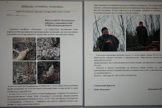 Керівництвом ПАФ «Подоляка» було подано до правоохоронних органів заяву про злочин, передбачений ст. 248 Кримінального кодексу України (незаконне полювання).