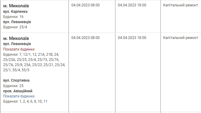 Сьогодні, 4 квітня, миколаївцям слід приготуватис до планових відключень світла. Як повідомляється на сайті "Миколаївобленерго", ряд будинків у місті через капітальний та поточний ремонт тимчасово залишиться без світла. Так через капітальний ремонт відключення електрики планують з 8:00 до 18:00 за наступними адресами: Також з 8:00 до 17:00 та з 8:00 до 18:00 ряд будинків залишиться без світла через поточний ремонт: Нагадаємо, що в області протягом дня можуть застосовувати графіки погодиних відключень світла. Нагадаємо, що з 14 лютого у Миколаївській області застосовувуються оновлені погодинні графіки на 6 черг. Новий графік за ПОСИЛАННЯМ. Джерело: 0512.com.ua