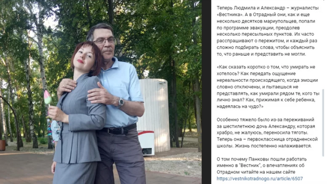 Олександр Панков після окупації Маріуполя сплив у Самарській області. Там він та його дружина отримали роботу в районній газетці під назвою «Вісник Відрадного» (подружжя колаборантів на фото нижче). Наразі О. Панков схвалює окупацію України та прославляє військових злочинців: