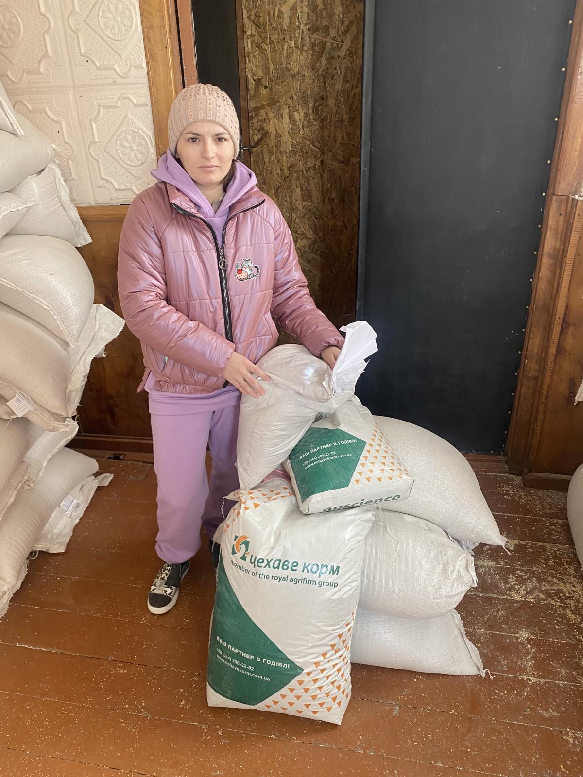 Допомогу отримали власники домогосподарств громади, що офіційно надали прихисток особам, які втікали від війни (ВПО) або допомагали громаді з їх харчуванням та ведуть домашнє господарство, вирощуючи курей, свиней. Адже, забезпечення тварин кормами, мінеральними добавками є необхідним для виживання наявного поголів’я і, що особливо важливо, для запобігання швидкому скороченню поголів’я тварин.