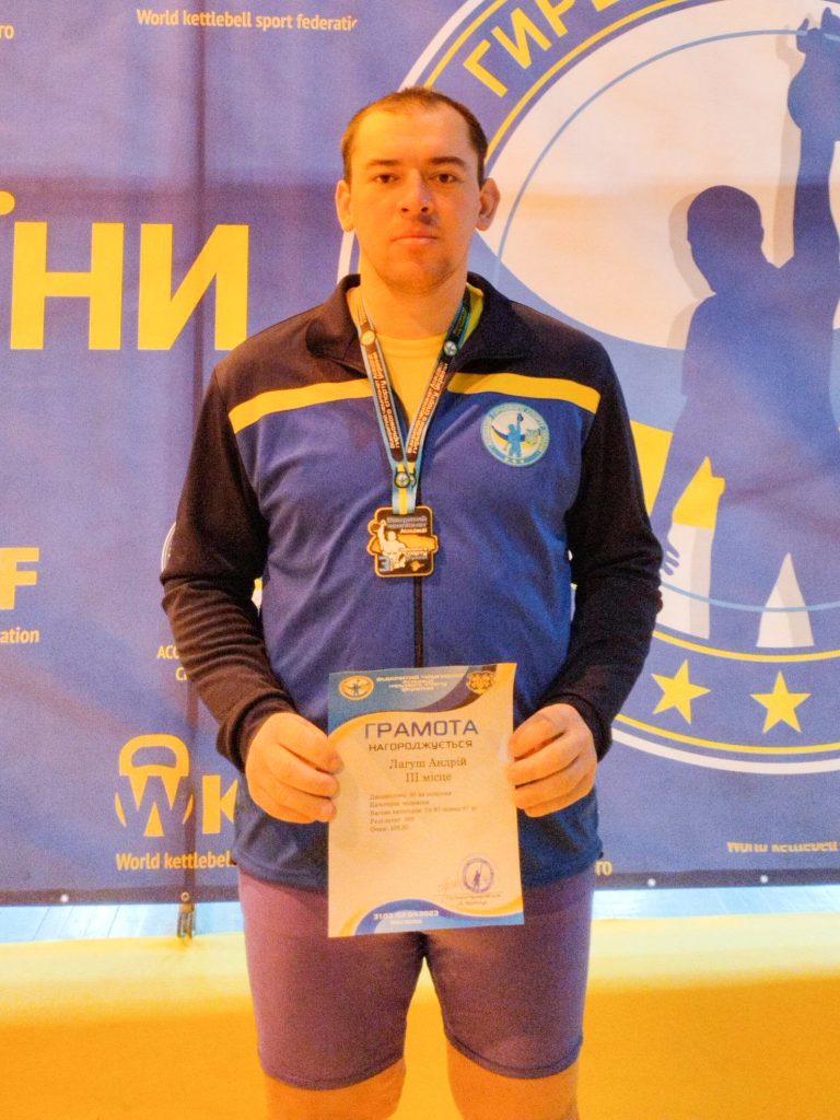 Лагуш Андрій з Дрогобиччини зайняв 3 місце у вправі “30 хвилинний марафон” у вагові категорії понад 87+ з результатом 369 підйомів гирею 24 кг