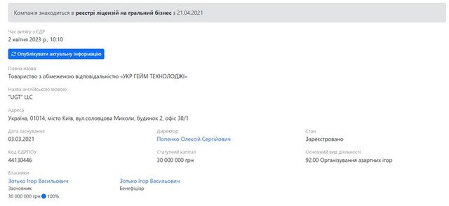 ТОВ «Укр гейм технолоджі», яке і є власником ліцензії організатора ігор онлайн-казино в Україні №147 від 21 квітня 2021 року, як ви вже помітили, з певного часу змінився формальний власник.