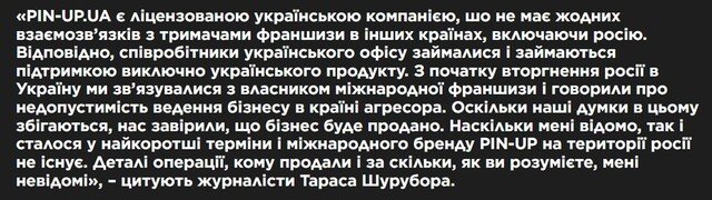 На цьому тлі вкрай сумнівною є заява СЕО PIN-UP.UA Тараса Шурубора про те, що онлайн-казино не має відношення до росії: