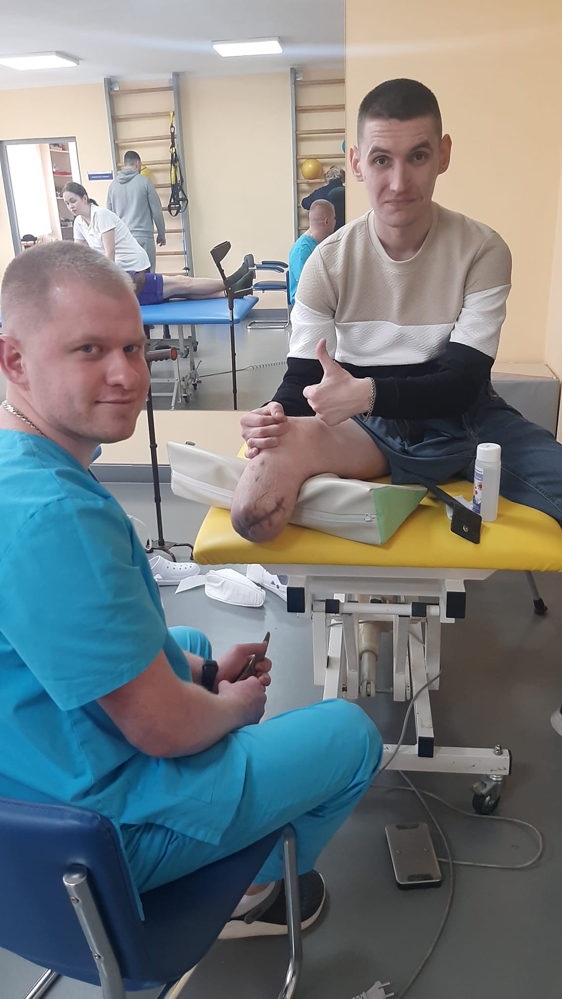 «Ми почали працювати з Андрієм ще в гострий період. А вже невдовзі перейшли до формуванння кукси для куксоприймача. Пізніше ми працювали з рубцем, трохи чекали поки він загоїться, а згодом разом з командою нашого Центру розробили для Андрія індивідуальну програму реабілітації, щоби покращити його стан після оперативного втручання та перейти до інтенсивних занять…», – розповідає фізичний терапевт Центру фізичної та реабілітаційної медицини обласної клінічної лікарні Максим Пащин.