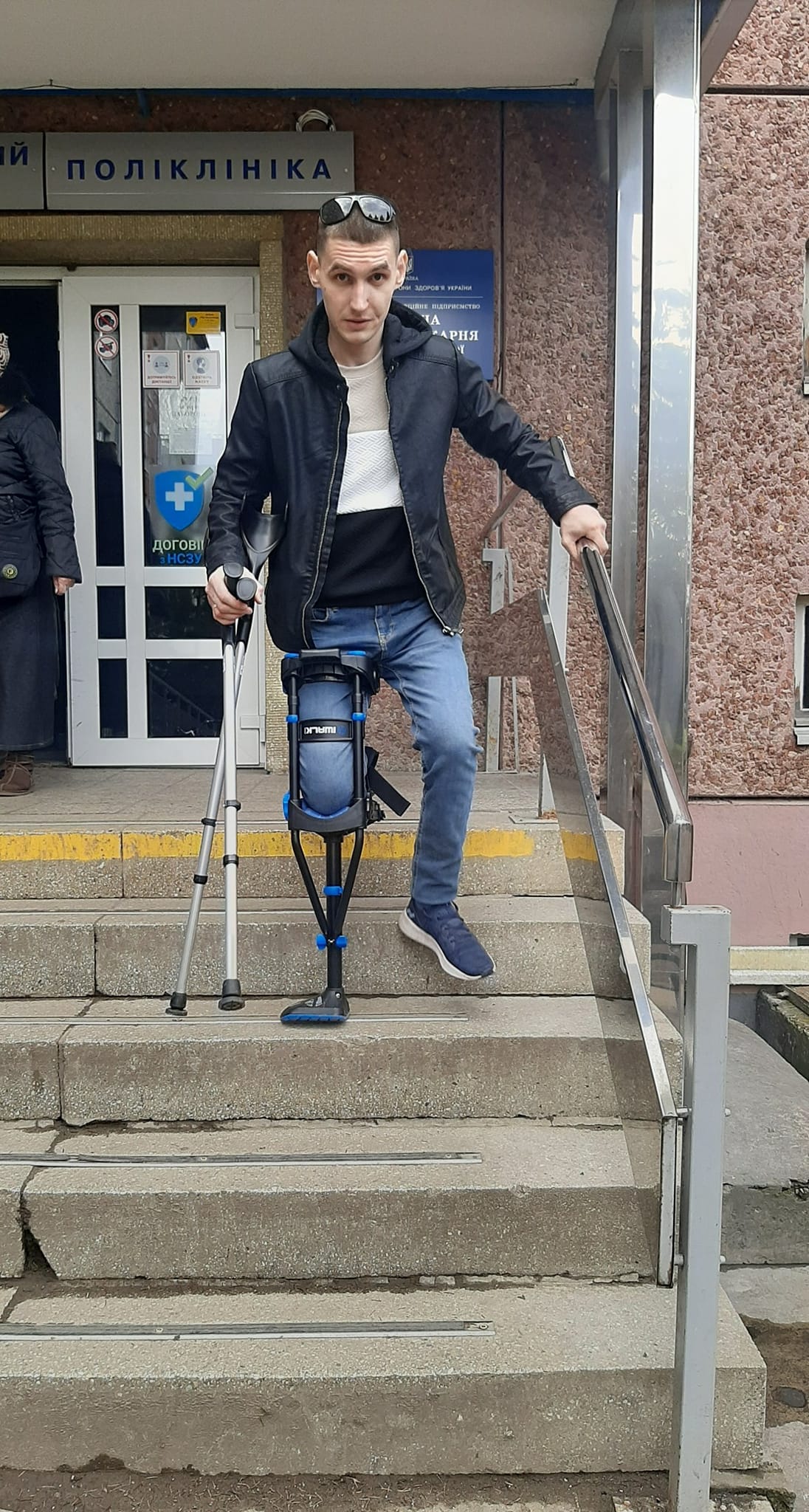 Фахівці Центру допомагали військовому встановити баланс, щоби згодом зі встановленим протезом він відчував рівновагу. Коли Андрій зміг стояти біля кушетки сам, не триматися за неї, тоді йому дали милиці й ставили ходу.