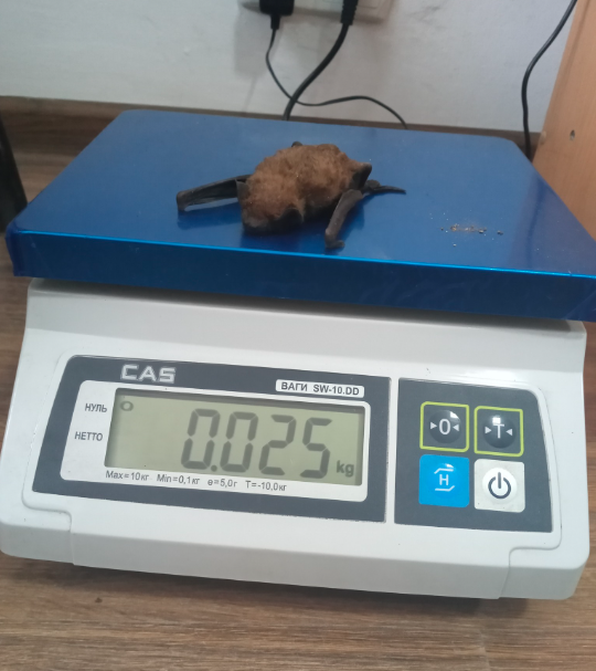 Зважте кажана. Визначте вид. Якщо його вага нижче норми, то його слід підгодовувати протягом 7-10 днів. Для рудої вечірниці це 30 грамів, для пізнього кажана – 27 грамів, для нетопира середземноморського – 8 грамів, двоколірного лилика – 14 грамів, вуханя – 12 грамів.