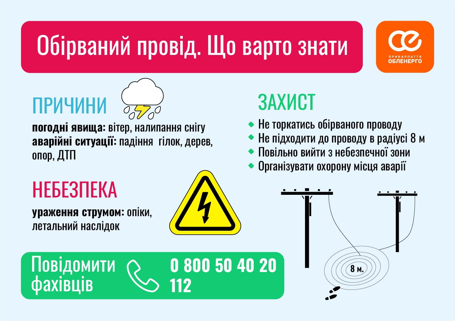 У “Прикарпаттяобленерго” обленерго кажуть, що за прогнозами синоптики зима затримається на два дні. Налипання важкого мокрого снігу та вітер можуть стати причиною обривів проводів ліній електропередачі.