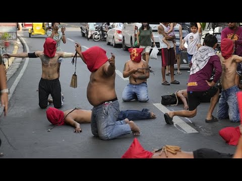 Ohne Maske, aber vermummt: Gründonnerstagsritual in Manila