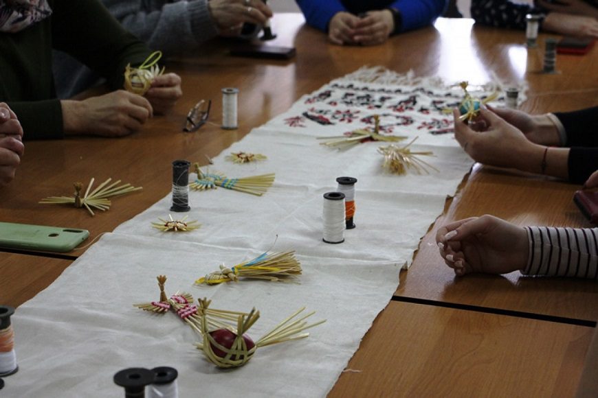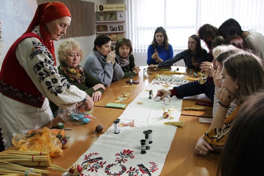 Студенти, читачі та працівники бібліотеки імені Олени Пчілки долучилися до творчого процесу. Валентина Якимович навчила їх виготовляти з соломи весняних пташок, берегиньок, оздоблювати великодні яйця. Також присутні ознайомилися з роботами майстрині й літературою про ремесло соломоплетіння на виставці «Солом’яне диво – плетиво».