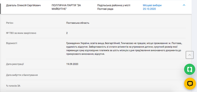 Тож не дивно, що новим очільником КО "Інститут розвитку міста" ПМР став Олексій Довгаль, який балотувався на останніх виборах до Подільської районної у місті Полтаві ради від політичної партії "За Майбутнє" Олександра Мамая.
