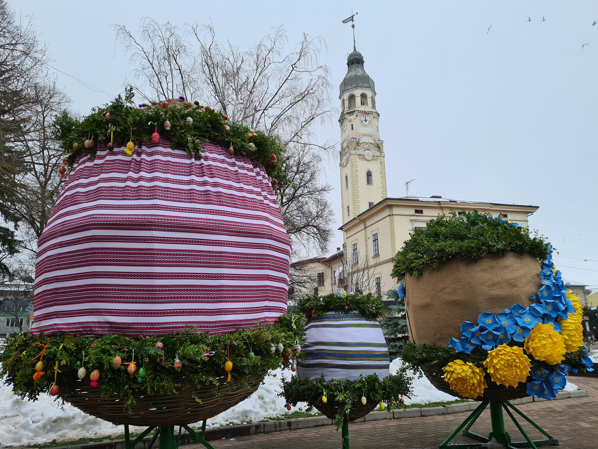 Традиційно напередодні Великодніх свят у Снятині на площі Незалежності встановили символічні великодні писанки.
