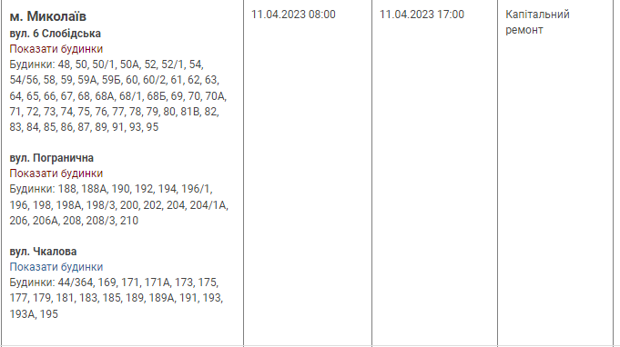 Сьогодні, 11 квітня, миколаївцям слід приготуватис до планових відключень світла. Як повідомляється на сайті "Миколаївобленерго", ряд будинків у місті через капітальний та поточний ремонт тимчасово залишиться без світла. Так через капітальний ремонт відключення електрики планують з 8:00 до 17:00 та з 8:00 до 18:00 за наступними адресами: Також з 8:00 до 17:00 ряд будинків залишиться без світла через поточний ремонт: Нагадаємо, що в області протягом дня можуть застосовувати графіки погодиних відключень світла. Нагадаємо, що з 14 лютого у Миколаївській області застосовувуються оновлені погодинні графіки на 6 черг. Новий графік за ПОСИЛАННЯМ. Джерело: 0512.com.ua